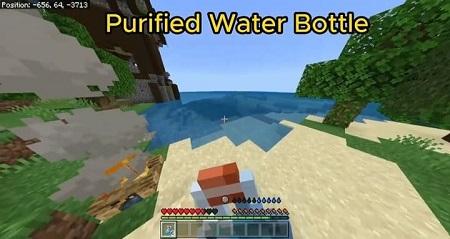 Thirst is an additional survival challenge introduced by this MCPE (Bedrock) mod. It functions similarly to hunger—when it depletes, you’ll gradually lose hearts and eventually die from dehydration.