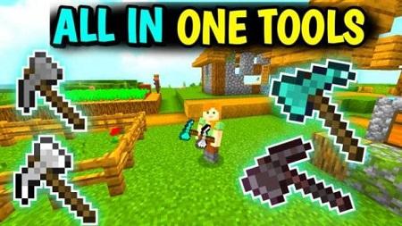 All in One Tools for Minecraft PE (Bedrock) is a practical addon that combines multiple tool functions into a single, versatile item. Instead of constantly switching between a pickaxe, axe, shovel, hoe, or sword, you can carry just one tool capable of performing all these tasks. It’s a huge space-saver in your inventory and an excellent choice for both survival and adventure gameplay.