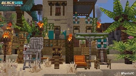 Bring the warm spirit of summer and tropical vibes into your Minecraft PE world with the Beachside Furniture Mod. Inspired by sunny beaches and Hawaiian culture, this addon introduces a large collection of decorative blocks, furniture, and interactive items to help you design your very own paradise. Whether you want to build a coastal resort, a tropical village, or just add a vacation feel to your survival base, this mod is the perfect choice.