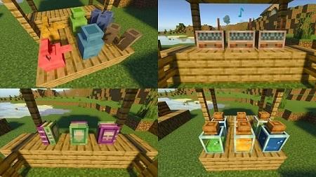 This decorative mod goes beyond simple furniture, adding food blocks that can be crafted using the recipe book and placed on tables for decoration. Interestingly, most blocks can be painted in different colors, and some can even have various fillings.