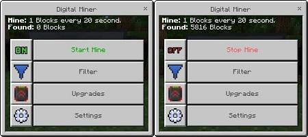 The Digital Miner mod introduces a powerful automated mining machine to Minecraft PE (Bedrock), designed to replace long and repetitive cave digging. This advanced device scans and mines blocks within a configurable area of up to 64 blocks, extracting only the resources you choose. By using smart filters, the miner can focus on valuable ores such as diamonds or netherite while completely ignoring common blocks like stone or cobblestone.
