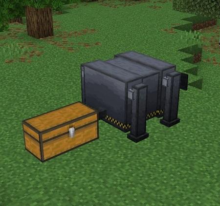 For correct operation, the miner must have a chest placed directly behind it to store the mined resources. This small requirement adds a layer of realism and integrates well with automated base designs.