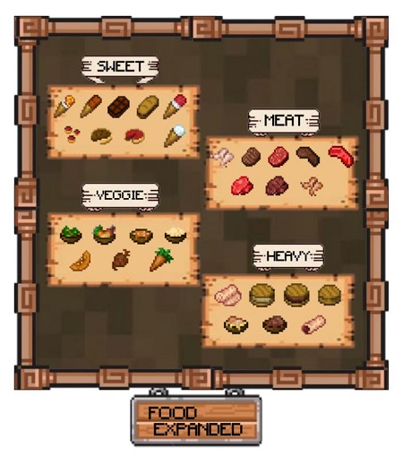 Food Expanded mod adds over 30 new types of food to Minecraft PE (Bedrock Edition), greatly enriching your culinary options while remaining faithful to the vanilla game’s textures and balance.