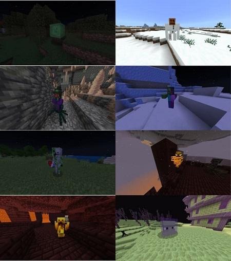 This addon adds several original creatures—hybrids created from standard Minecraft mobs. Alongside regular fused mobs, it features formidable bosses with unique powers and high difficulty.