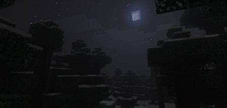Daylight is pale and cold, casting long, dim shadows that barely illuminate the terrain. Even at midday, the world feels lifeless and unwelcoming. When night falls, darkness becomes absolute: the sky turns pitch black, while the moon and stars struggle to shine through. Fog grows even denser, making every journey without a torch a terrifying challenge.
