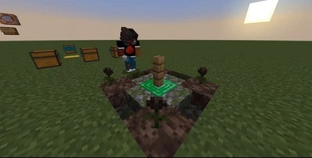 To construct the structure, you’ll need the following items: 4 blocks of soul sand, 4 wither roses, 4 ladders, 1 block of ore (such as iron, gold, or diamond), a fence, and the player’s head from MCPE. The soul sand is placed at the corners of a 3×3 structure, with a wither rose on top of each soul sand block, and ladders positioned between them. At the center of the structure, place the ore block, add a fence on top of it, and then attach the player’s head to the fence. Once complete, the structure activates, and the player is resurrected.