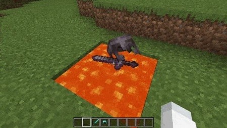 All dropped items in MCPE will exhibit realistic physics and appearance on the ground, yet maintain their original properties: Netherite items do not burn, they do not float in water, etc.