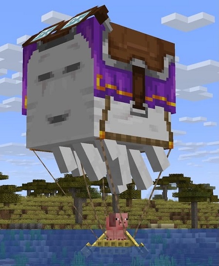 Tie any entity to a Flying Ghast using 4 leads — madness in the skies!