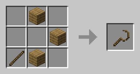 The sickle is useful for quickly planting crops immediately after harvesting them. Its area of effect varies by crafting material: wood (1×1), stone (3×3 cross), gold (3×3 cross), iron (3×3), diamond (5×5), and netherite (7×7).