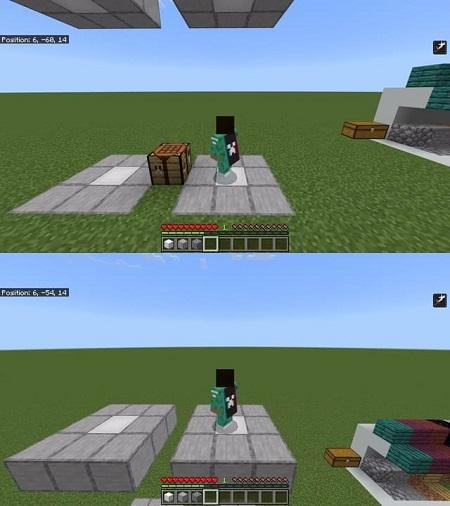 It’s straightforward. As previously described, to ascend up to 64 blocks to the upper teleporting block, jump on the lower block. To descend, crouch on the upper block in your Minecraft Bedrock world.
