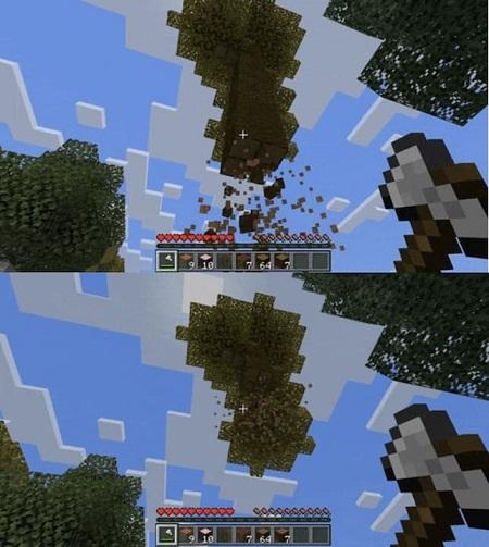 The Raiyon’s Tree Chop-Capitator addon is perfect for those looking to make Minecraft PE more realistic. Simply crouch and start chopping a tree, and you’ll see the log shrink and the bark scatter.