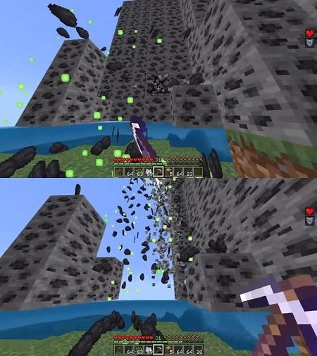 - Tools enchanted with Fortune or Unbreaking will work with the mod and can be used for mass mining.